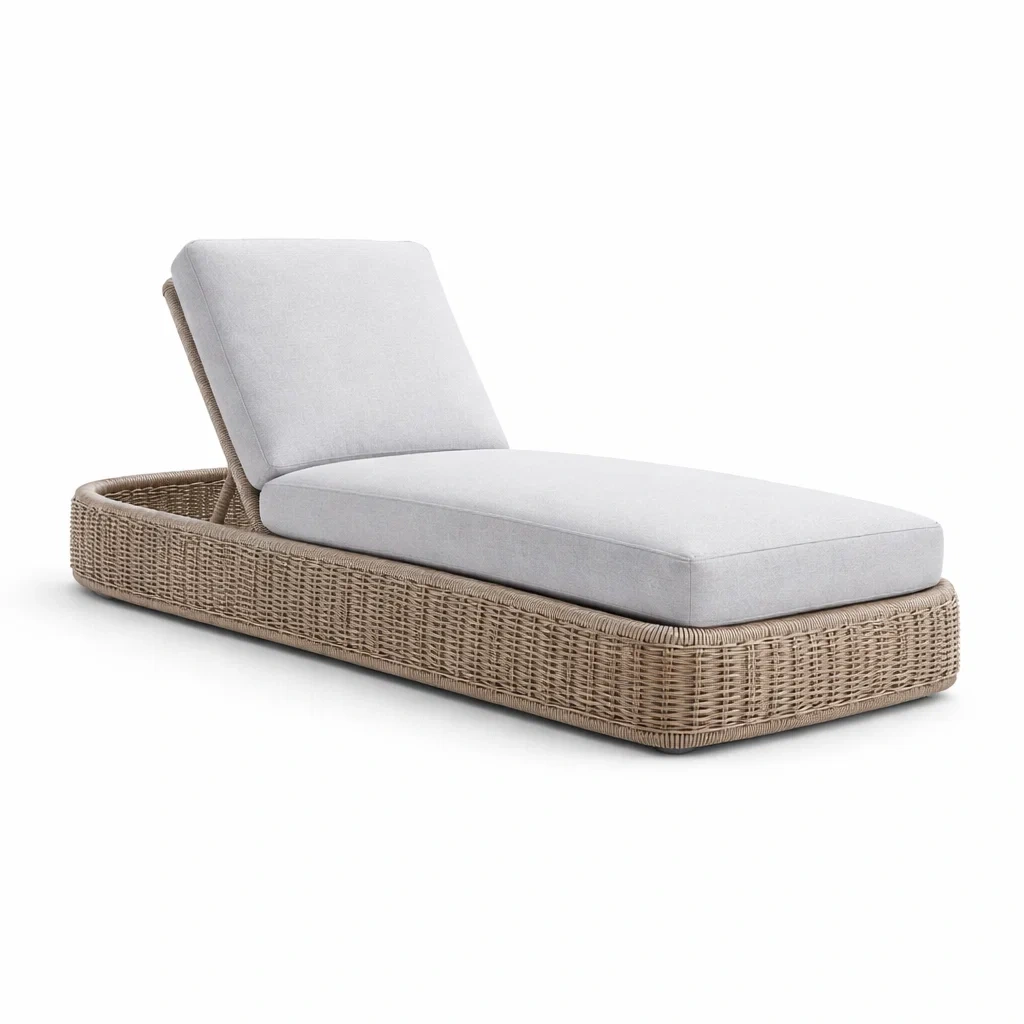 Chaise longue en polyéthylène tressé beige avec coussin en polyester gris