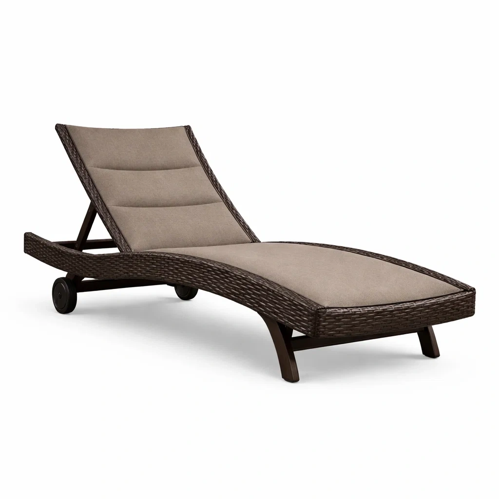 Chaise longue réglable en résine tressée beige avec coussin gris