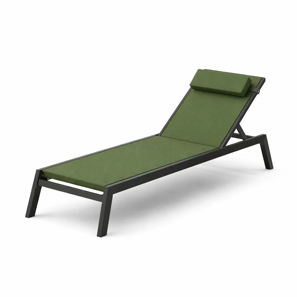 Chaise longue de jardin réglable en aluminium et polyester vert