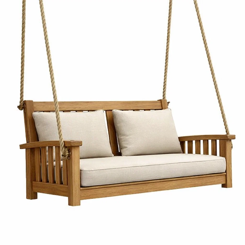 Balancelle de porche en bois de teck avec cordes naturelles