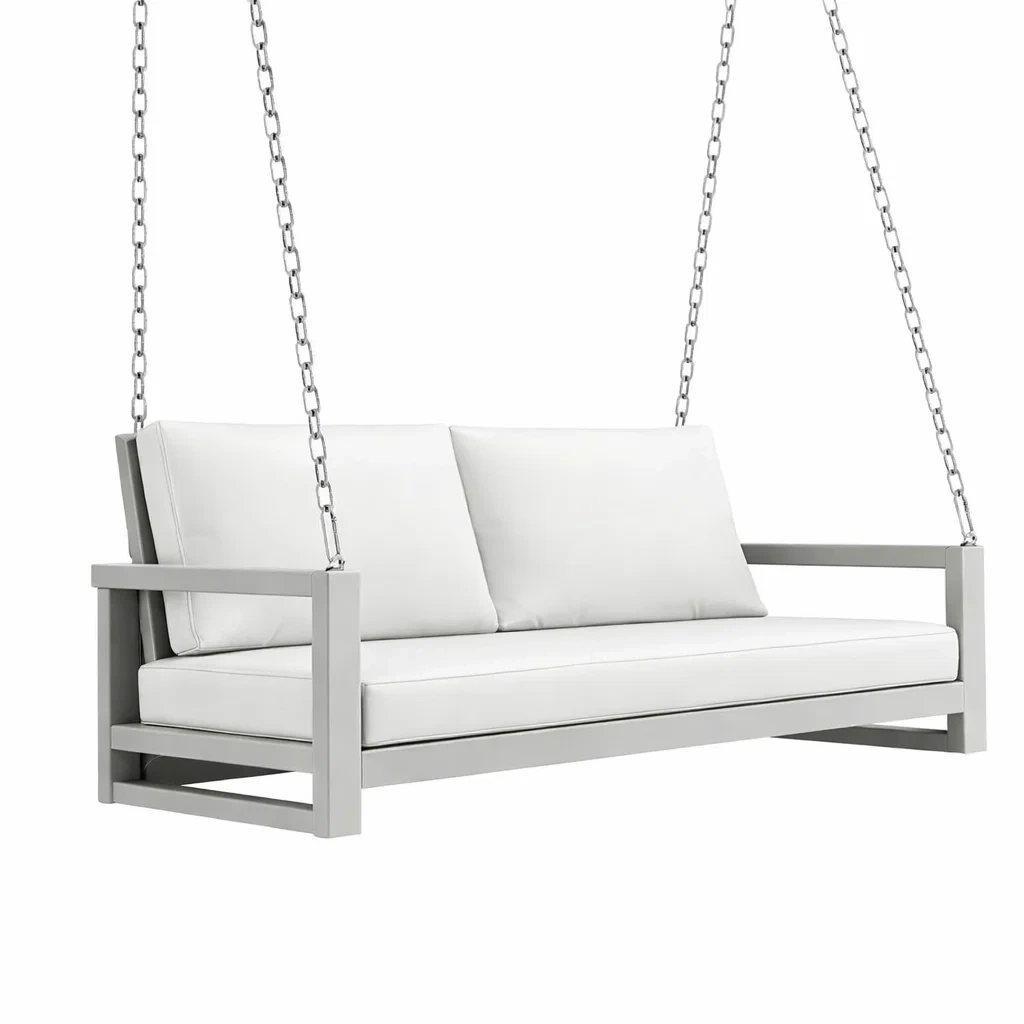 Balancelle de porche 3 places en métal et polyester blanc