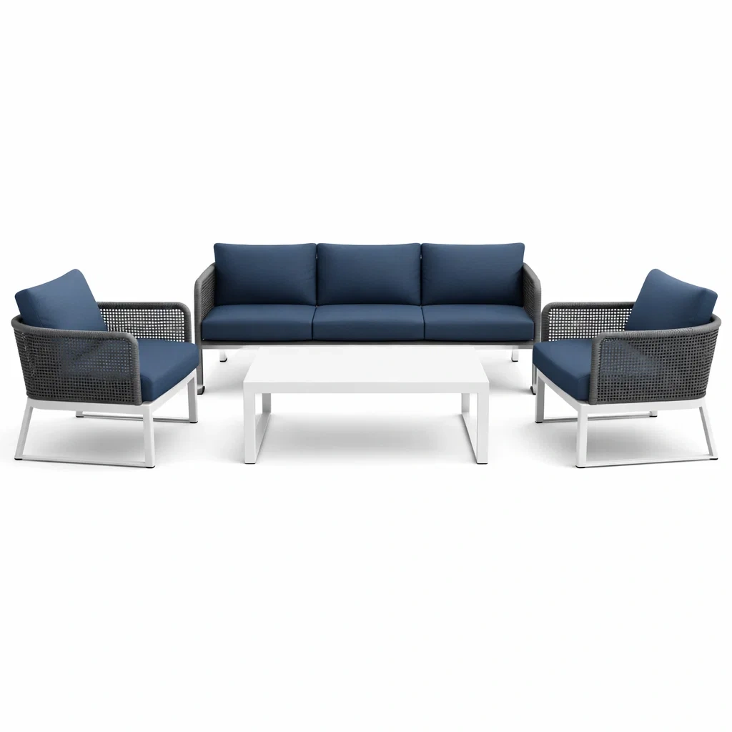 Matériau : cadre en métal, revêtement en polyester pour l'assise, dossier en corde tissée