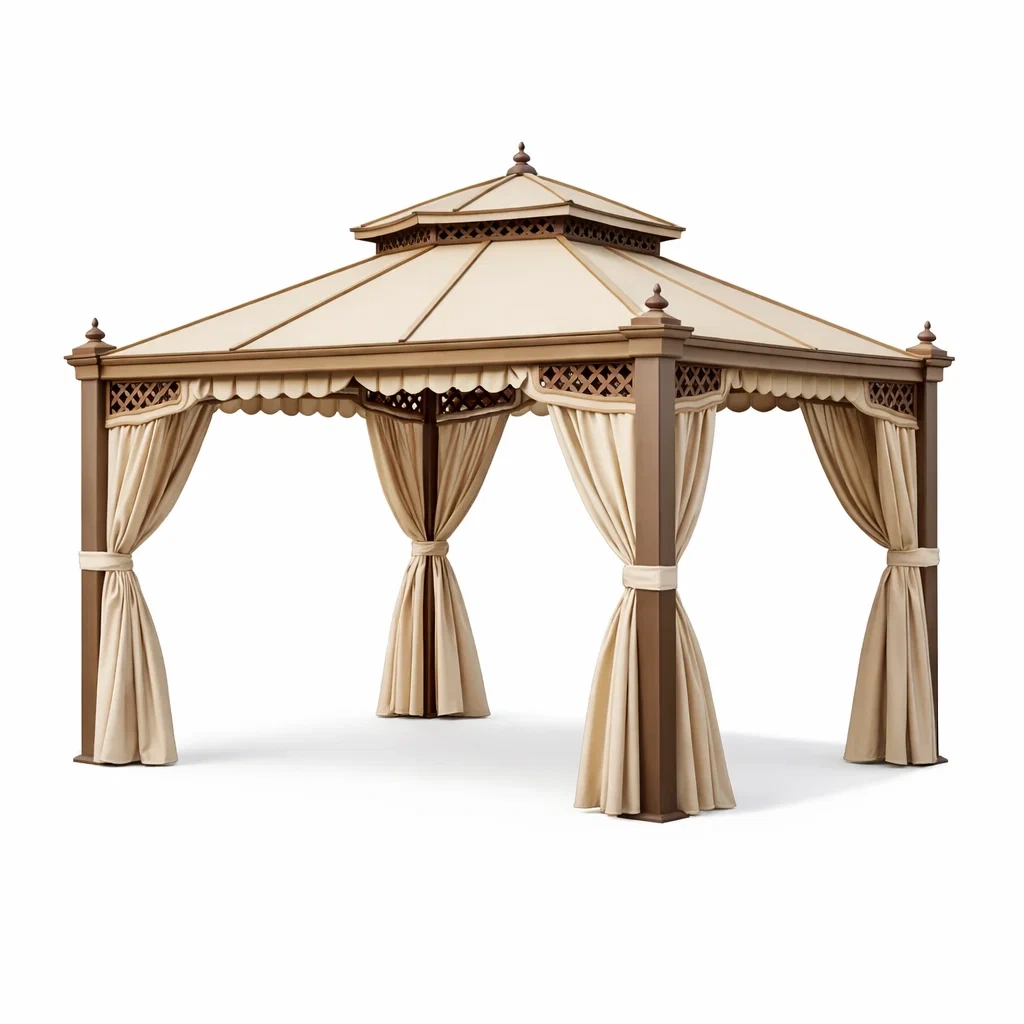Matériaux : Cadre en acier, toit et rideaux en polyester.