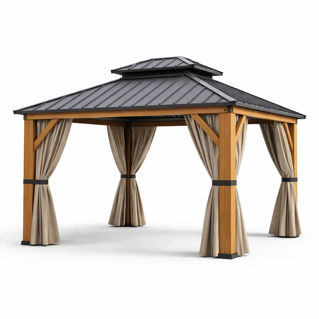 Couleur : structure en bois avec rideaux beiges
