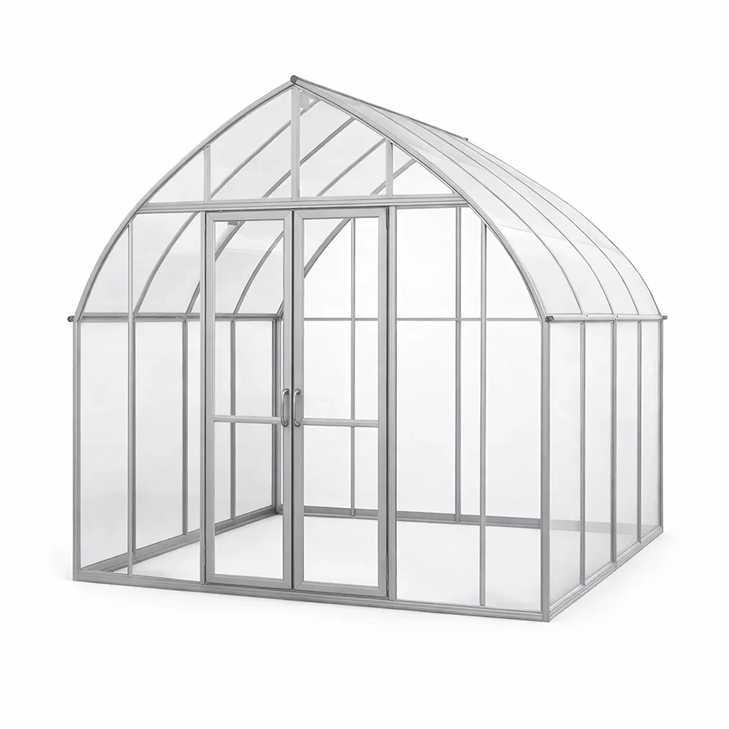 Cette serre de jardin est fabriquée en aluminium robuste et en panneaux de polycarbonate transparent de 4 mm. Elle est conçue pour offrir une isolation thermique efficace et protéger vos plantes. Les dimensions de la serre sont de 300 cm de longueur, 300 cm de largeur et 250 cm de hauteur.